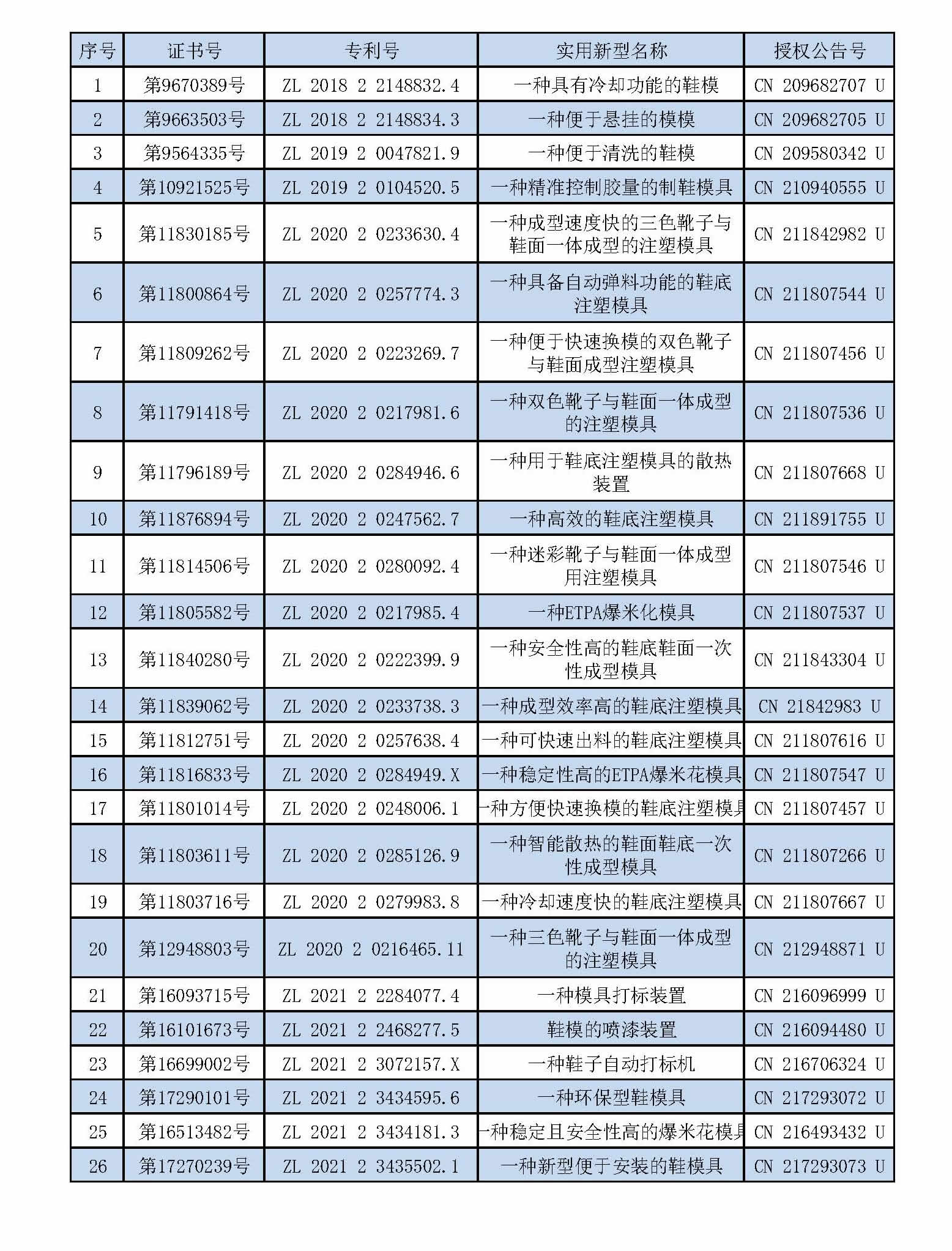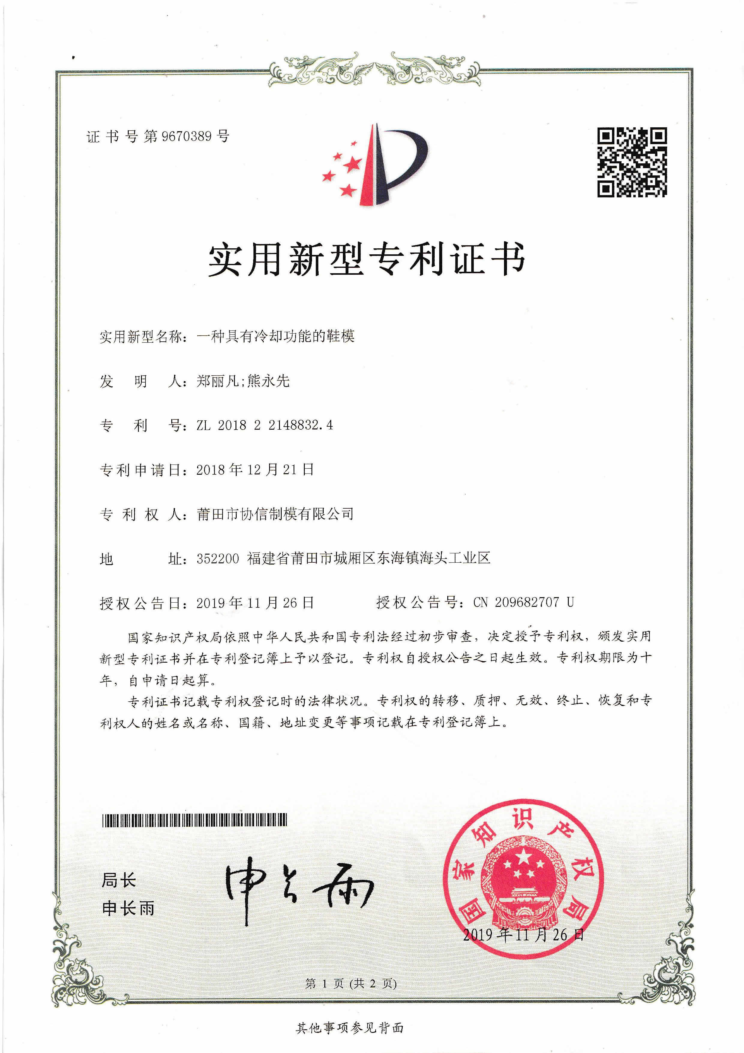 莆田市協信制模有限公司成立于2003年9月10日,由香港協信香港協信國際貿易有限公司投資組建,注冊資金120萬美元,是一家專業從事業鞋類模具設計、制造與銷售企業,在行業內享有盛譽。主要產品:RB、EVA、PVC、TPU、TR、TPR、ETPU、射出EVA等。公司月產能模具900多套,所有產品均采用國際質量標準,各個生產環節貫徹完善品質檢查體系。